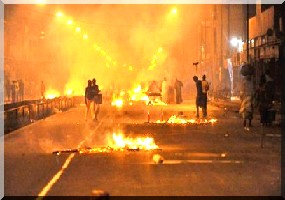 La capitale Sénégalaise a eu vraiment chaude dans la nuit d’hier. Et pour cause, les jeunes ont brûlé des pneus,en détruisant des agences et des banques. A Colobane, ils ont battu un policier et ce dernier a finalement trouvé la mort : des journalistes tabassés par les forces de l’ordre. Le pays s’est s'embrasé toute la nuit. Les jeunes contestent avec force la décision du Conseil constitutionnel. Ils soutiennent qu’ils vont jusqu’au palais pour déloger MeWade.